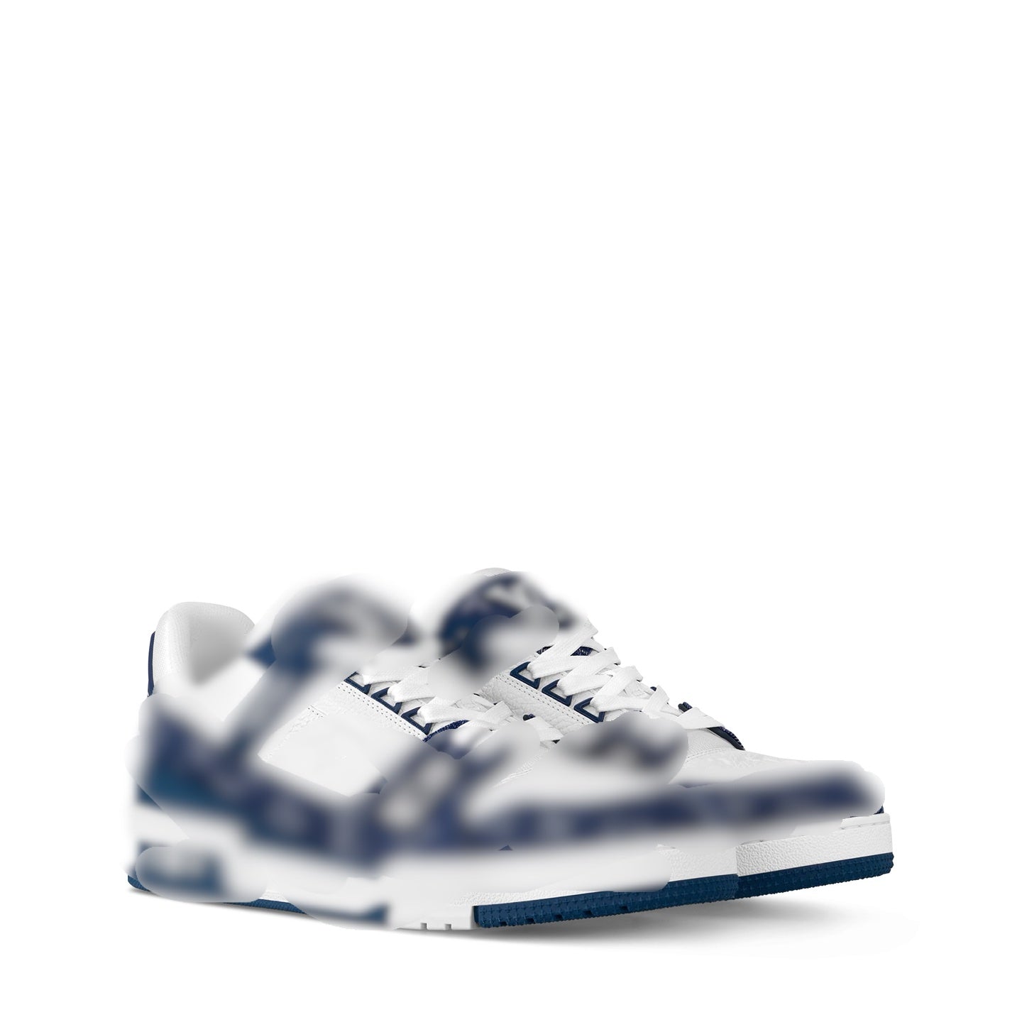 Designed by the Artistic Director, the iconic Trainer sneaker is updated this season in Monogram denim and Monogram-embossed grained calf leather. The contrasting colors and materials highlight the intricate construction of this model, which draws inspiration from vintage basketball sneakers.